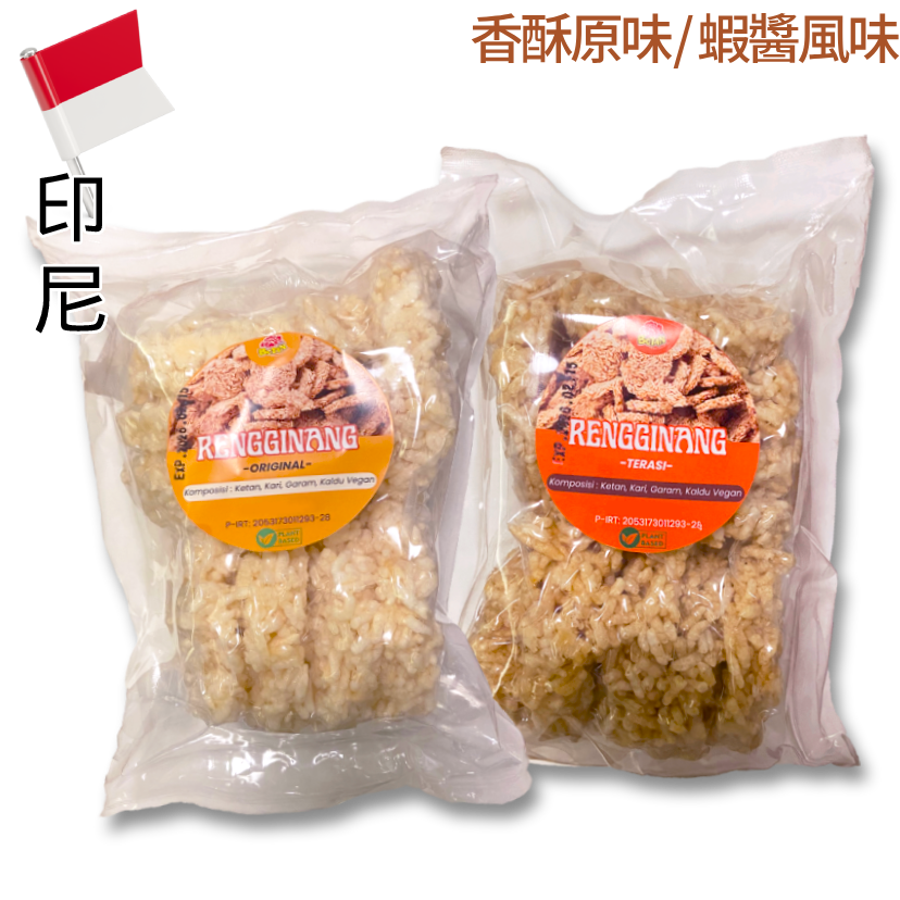 香酥原味 💁♂️現批次有效日期:2026年2月15日 蝦醬風味 💁♂️現批次有效日期:2026年2月15日 🔸印尼傳統零食 🔹味道鹹香純粹,但意想不到地美味 🔸口感酥脆有如兒時暴暴飯焦,食唔停口 🔹不含防腐劑 📣產品易碎,運送過程中可能會碎,不影響味道,購買前敬請考慮清楚! 📣產品容易受潮,開封後請盡快享用喔! 📣如非即時享用,可存放於雪櫃以保持香脆口感! 原味 成份:糯米、鹽、調味料、素食調味料。 蝦醬風味 成份:糯米、鹽、調味料、素食調味料。 內含致敏物:大豆。 淨重:150克 產地:印尼