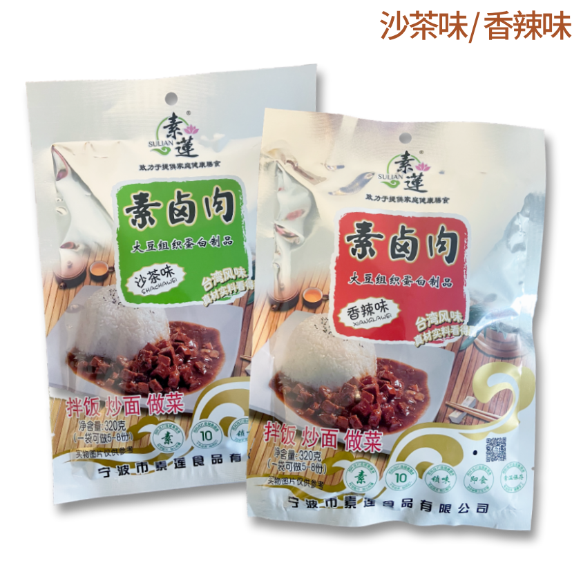 素鹵肉(沙茶味) 💁♂️現批次有效日期: ***包裝上顯示為生產日期(),敬請留意*** 素鹵肉(香辣味) 💁♂️現批次有效日期:2026年3月1日 ***包裝上顯示為生產日期(2025年3月1日),敬請留意*** 🔸國內素食十大品牌 🔹全素食生產工廠,不含五辛、動物成份 🔸真材實料,口感細膩 🔹即開即食 🔸可拌飯、拌麵、配搭煮餸 💁🏻♀️Facebook介紹重溫👇🏻 https://www.facebook.com/ganionveggie/posts/pfbid02Wj98DMxL9yF5AGTmywBmrmDbeX3N4nn9PuyU2VA7fKenHJruVdTJUwnMirsGZ742l https://www.facebook.com/ganionveggie/posts/pfbid02jjZfCA2MVbUKHLKUWdfq8UNwjaXqArNG2ivWM75t1XbKmHJmcqPb8uCJFj6HgPdFl 沙茶味、香辣味 成份:飲用水、大豆組織蛋白(大豆分離蛋白、谷朊粉、大豆蛋白粉、食用小麥澱粉)、食用植物油、釀造醬油、白砂糖、食用鹽、魔芋粉、卡拉膠、磷酸酯雙澱粉、酵母抽提物、香辛料、食用香精。 內含致敏物:含大豆、小麥、酵母。 淨重:320克 產地:中國