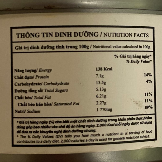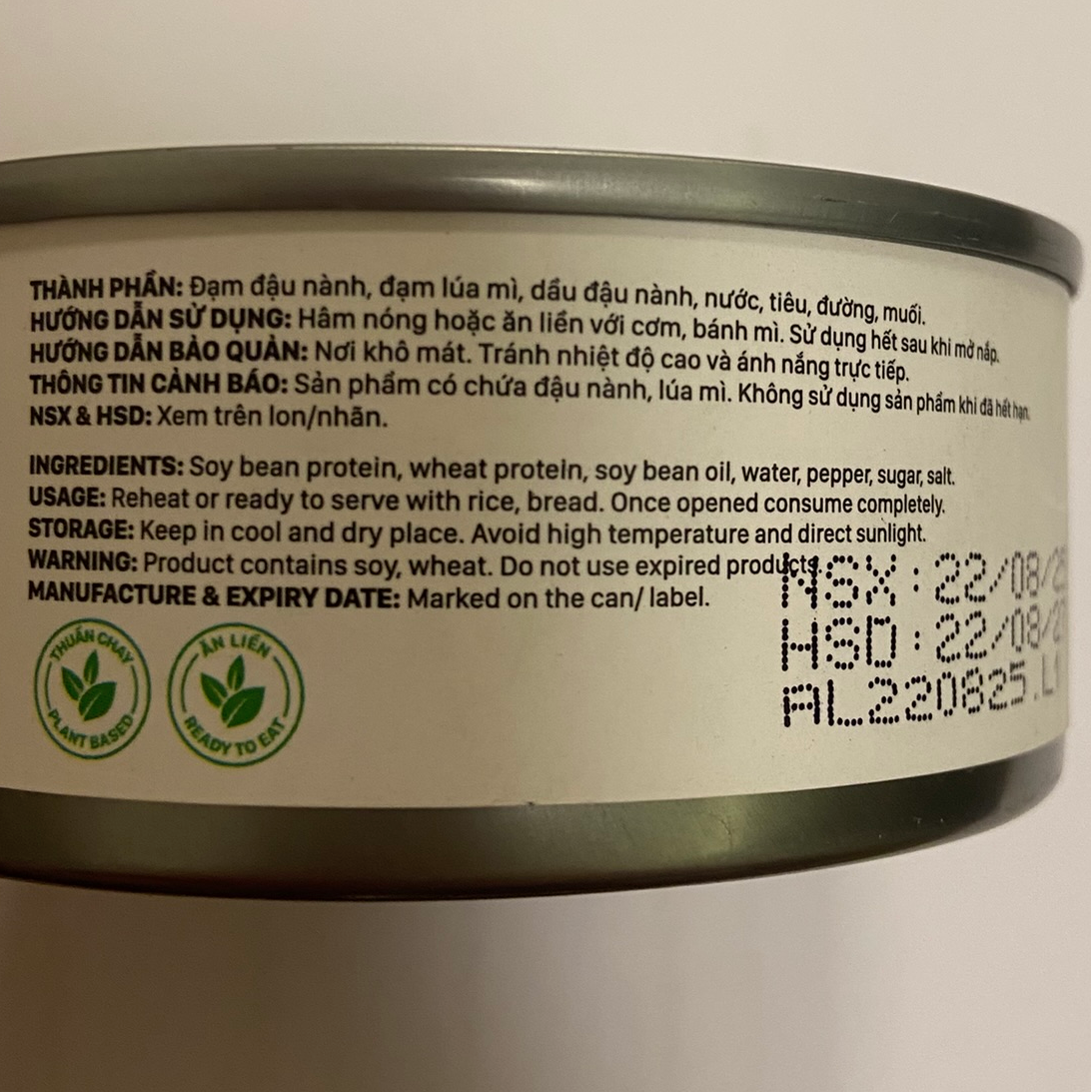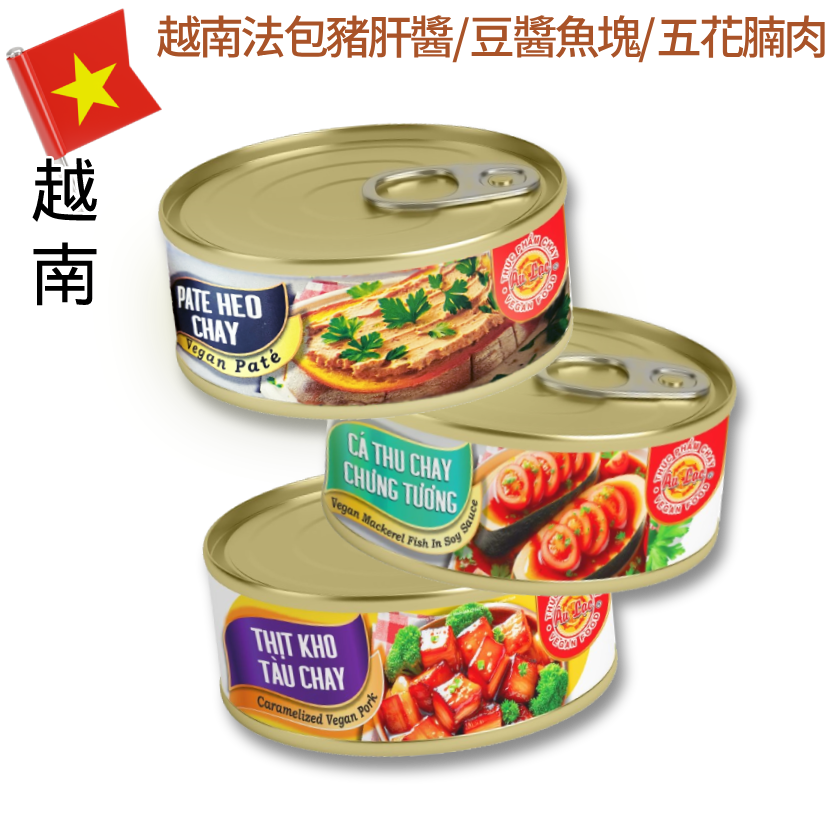 越南法包豬肝醬 💁♂️現批次有效日期:2027年8月19日 豆醬魚塊 💁♂️現批次有效日期:2026年9月25日 五花腩肉 💁♂️現批次有效日期:2027年8月22日 🔸即開即食 🔹越南法包豬肝醬適用於配合麵包食用 🔸豆醬魚塊、五花腩肉開飯加餸超方便 📣部份貨品運抵本港時有不同程度凹罐情況,我們將隨機發貨。而出貨運送過程中亦可能會產生凹罐情況,但不影響產品質量及味道,購買前敬請考慮清楚! 越南法包豬肝醬 成份:大豆蛋白、小麥蛋白、大豆油、水、胡椒、糖、鹽。 內含致敏物:大豆、小麥及其製品。 淨重:120克 產地:越南 豆醬魚塊 成份:大豆蛋白、小麥蛋白、大豆油、水、醬油4%、玉米澱粉、海藻、胡蘿蔔、胡椒、糖、鹽。 內含致敏物:大豆、小麥及其製品。 淨重:140克 產地:越南 五花腩肉 成份:大豆蛋白、小麥蛋白、大豆油、水、胡椒、糖、鹽。 內含致敏物:大豆、小麥及其製品。 淨重:140克 產地:越南
