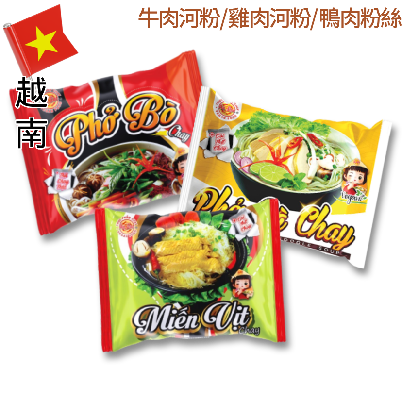 牛肉河粉 💁♂️現批次有效日期:2026年11月5日 雞肉河粉 💁♂️現批次有效日期:2026年8月30日 鴨肉粉絲 💁♂️現批次有效日期:2026年10月10日 🔸傳統越南湯麵,國民美食 🔹以米粉為基礎,搭配素肉、香草和香料 🔸湯底清爽卻惹味 牛肉河粉 成份:米、變性澱粉、素肉(大豆蛋白、小麥蛋白、玉米澱粉、大豆油、水、鹽):5%、芋頭、茴芹、大豆油、薑、香菜、胡椒、鹽、糖。 內含致敏物:大豆、小麥 淨重:70克 產地:越南 雞肉河粉 成份:米、變性澱粉、素肉(大豆蛋白、玉米澱粉、大豆油、水、鹽):5%、香菜、辣椒、胡椒、鹽、糖。 內含致敏物:大豆 淨重:70克 產地:越南 鴨肉粉絲 成份: 粉絲:馬鈴薯澱粉、綠豆澱粉。 調味包:素鴨(小麥蛋白、大豆油、鹽)30%、胭脂樹油、胡蘿蔔、玉米粒、香菜、胡椒、鹽、素香料。 內含致敏物:小麥、大豆及其製品。 淨重:65克 產地:越南